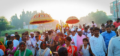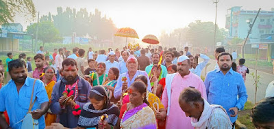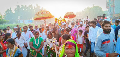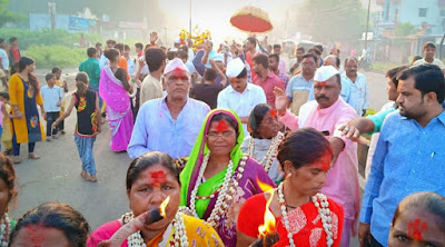 यावेळी फटाक्यांची आतिषबाजी करण्यात आली. पालखीच्या पुढे आराध्यांचा मेळा पोत घेऊन नाचत होता तर पाठीमागून डोक्यावर कलश व हातामध्ये आरतीचे ताट घेऊन येण्याने पालखी सोहळा दिमाखदार दिसत होता.