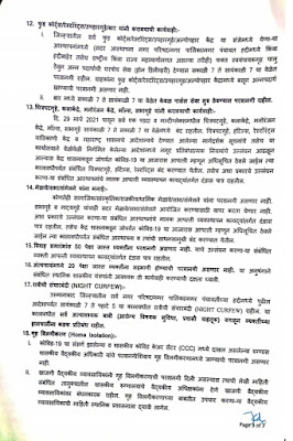 15 ) विवाह समारंभांस 50 पेक्षा जास्त व्यक्तींना परवानगी असणार नाही. याचे उल्लंघन करणा-या संबंधित व्यक्ती आपत्ती व्यवस्थापन कायद्यांतर्गत दंडास पात्र राहतील.