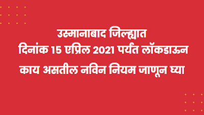 उस्मानाबाद जिल्ह्यातील सर्व नगर परिषद , नगर पालिका , नगर पंचायतींच्या हद्दीमध्ये पुढील आदेशापर्यंत सायंकाळी 7 ते पहाटे 5 या कालावधीत रात्रीची संचारबंदी (NIGHT CURFEW) राहील. या कालावधीत सर्व अत्यावश्यक बाबी यात आरोग्य विषयक सुविधा, प्रवासी वाहतूक वगळून व्यक्तींच्या हालचालींना कडक प्रतिबंध राहील.